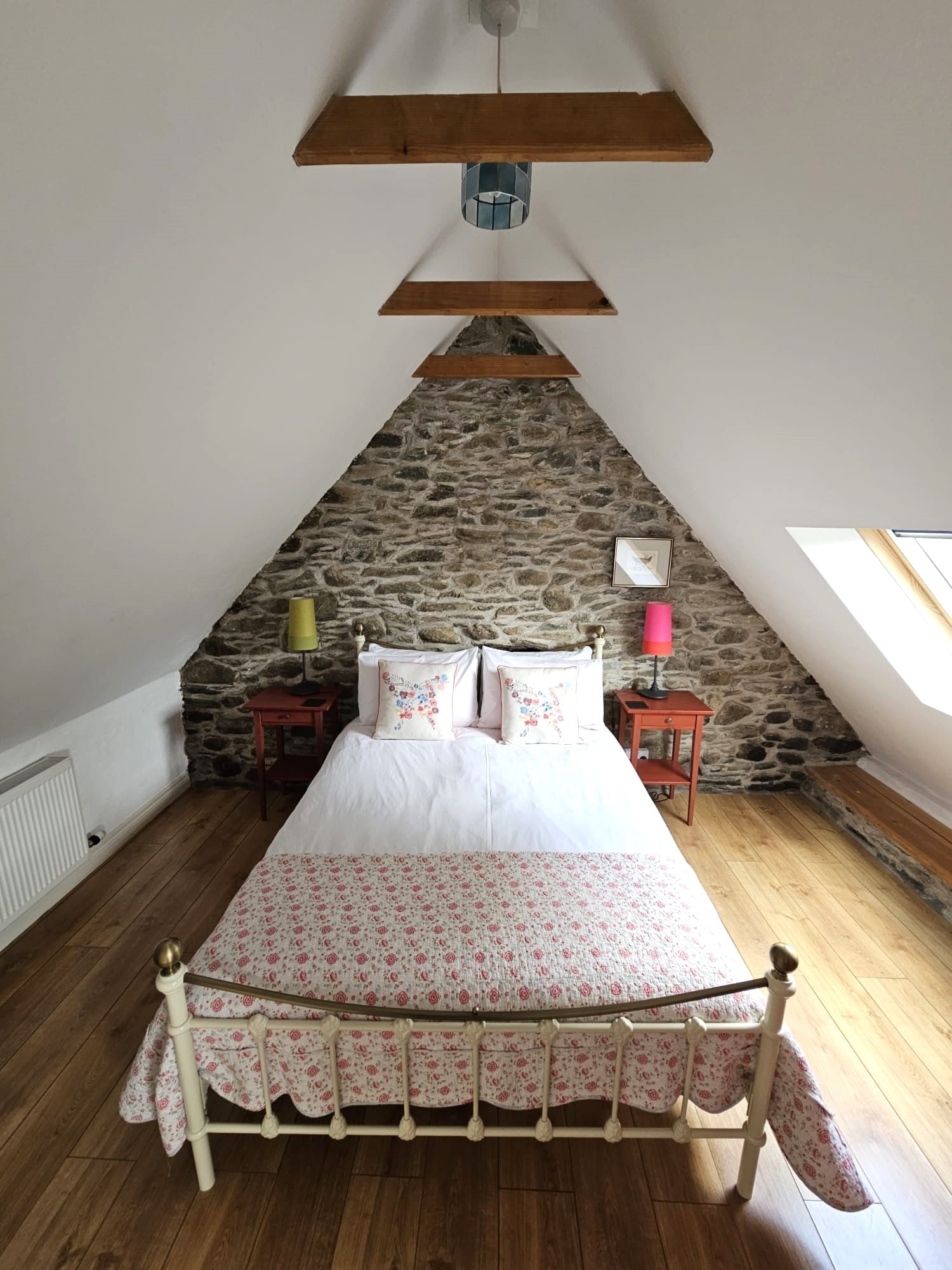 The ground floor features an open-plan kitchen, dining, and living area with a vaulted ceiling, along with the bathroom. Upstairs, you’ll find a cosy double bedroom. Guests can enjoy a private patio and garden area with seating outside. Two friendly resident donkeys on the farm are always eager to greet visitors! The hosts, a family of musicians, play traditional Irish music locally in Kenmare, just a short drive away.