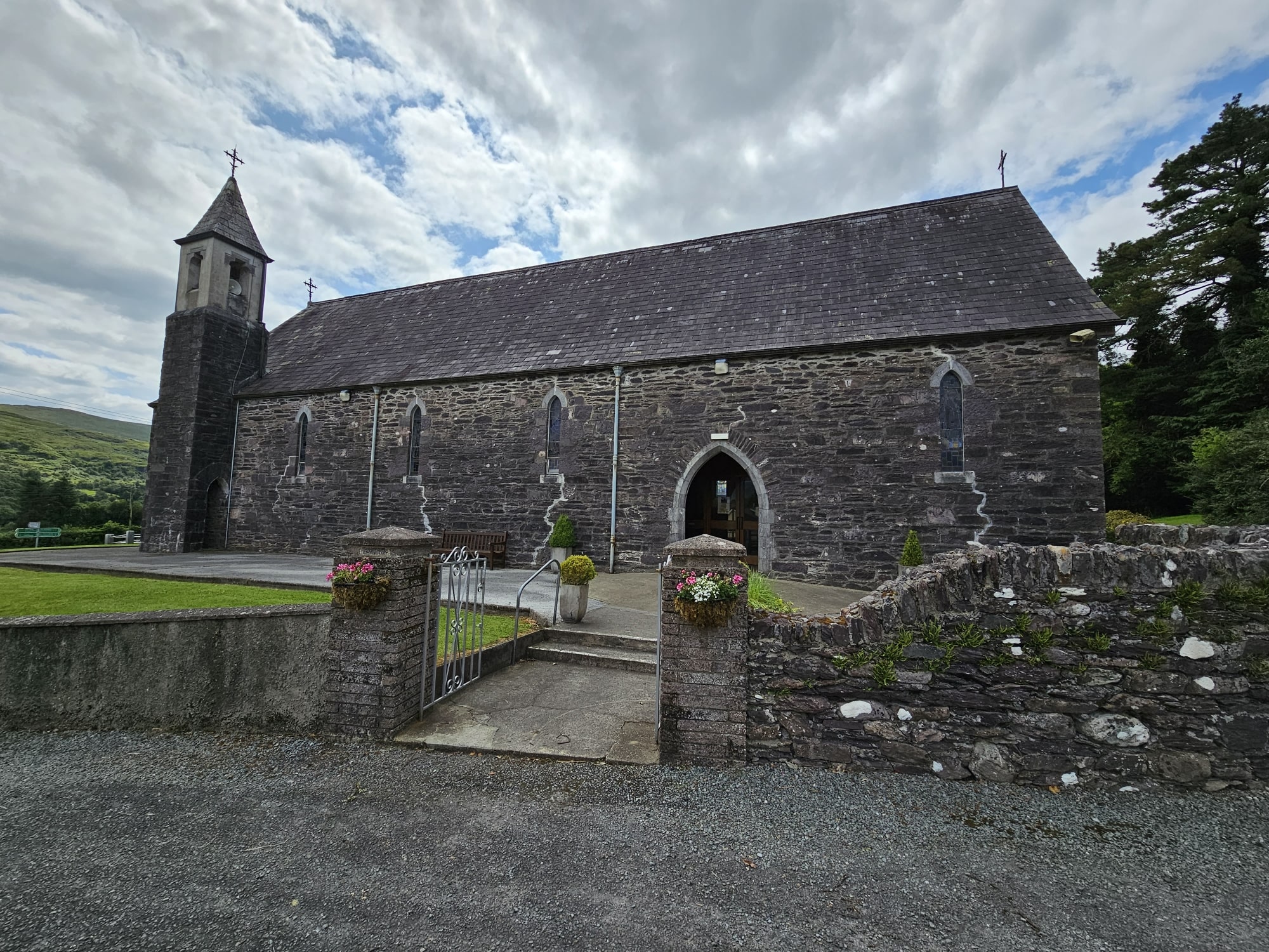 Just 11 kilometres (7 miles) south west of the beautiful, picturesque town of Kenmare, proudly stands St. Fiachna’s Church in the heart of the Bonane parish. Named after our patron saint St. Fiachna, this church was built in the 19th century at a total cost of one thousand three hundred and fifty pounds. This magnificent building was designed by the architect Daniel 0′ Connell, grandson of the Liberator, and heir to Derrynane Abbey and built by Mr. Daniel Foley from Sneem.