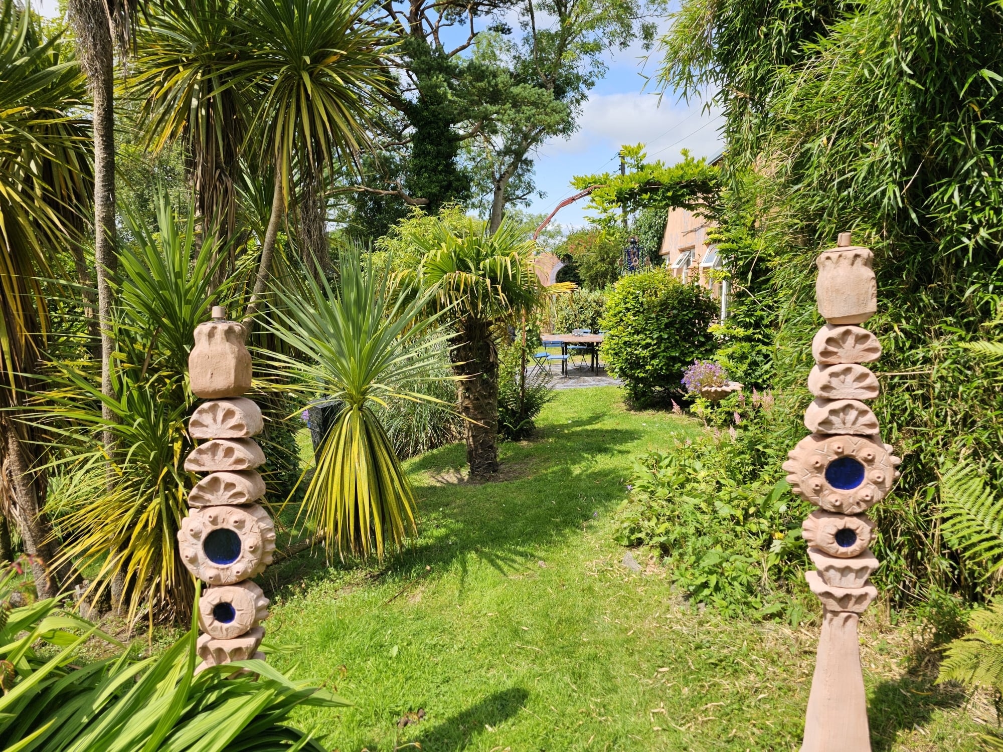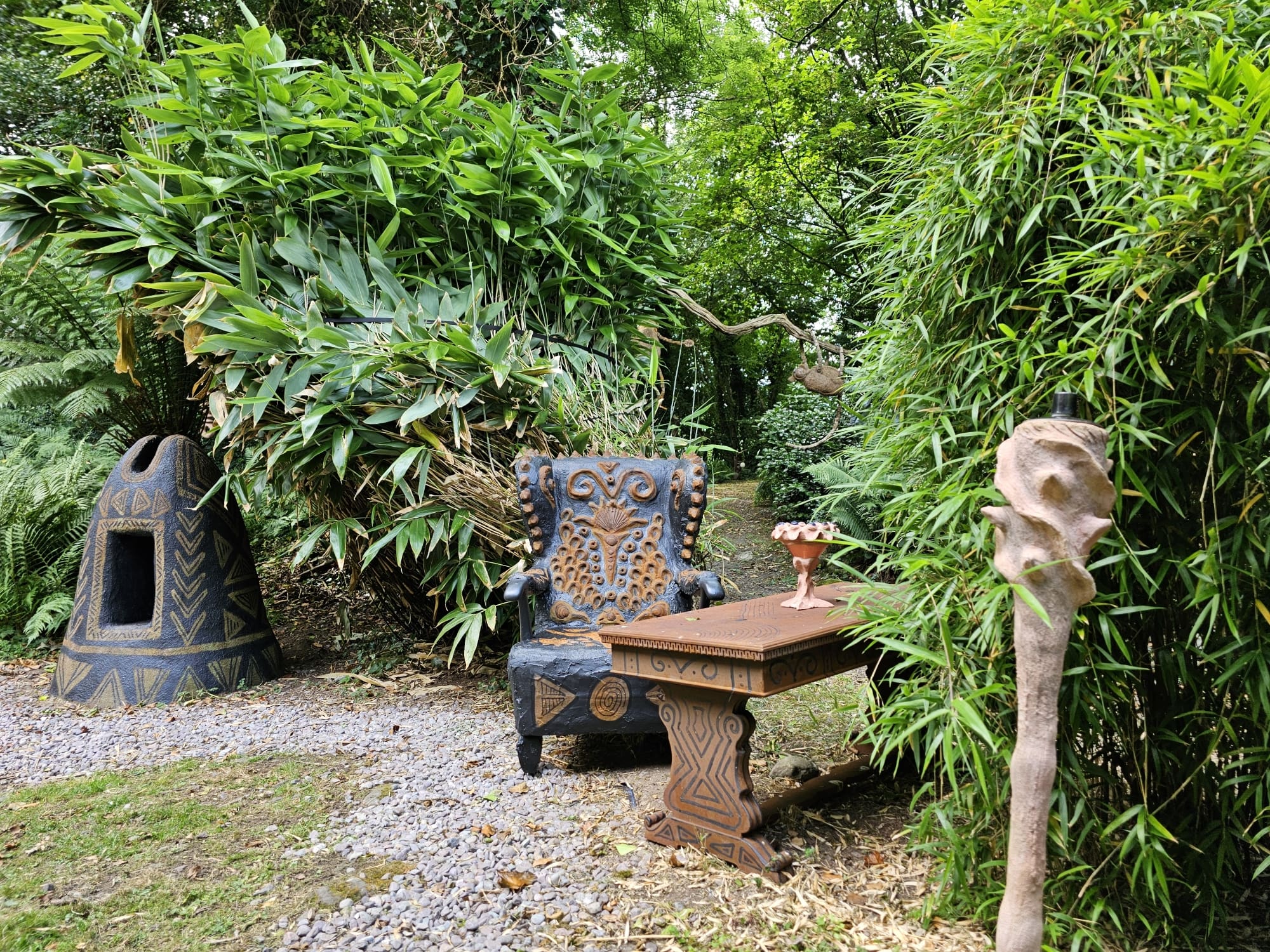 Vera and Besi Besançon have created a green oasis with different garden sections like the Rain Forest, the Moroccan Garden, the Secret Garden or the Blue Alley. Several terraces invite visitors to remain and to enjoy stunning views and the tranquillity of the place. Bushes, trees, blooming flowers and greens provide a colourful organic basis for approximately 180 sculptures, objects and artefacts, all handmade by Vera Besançon.